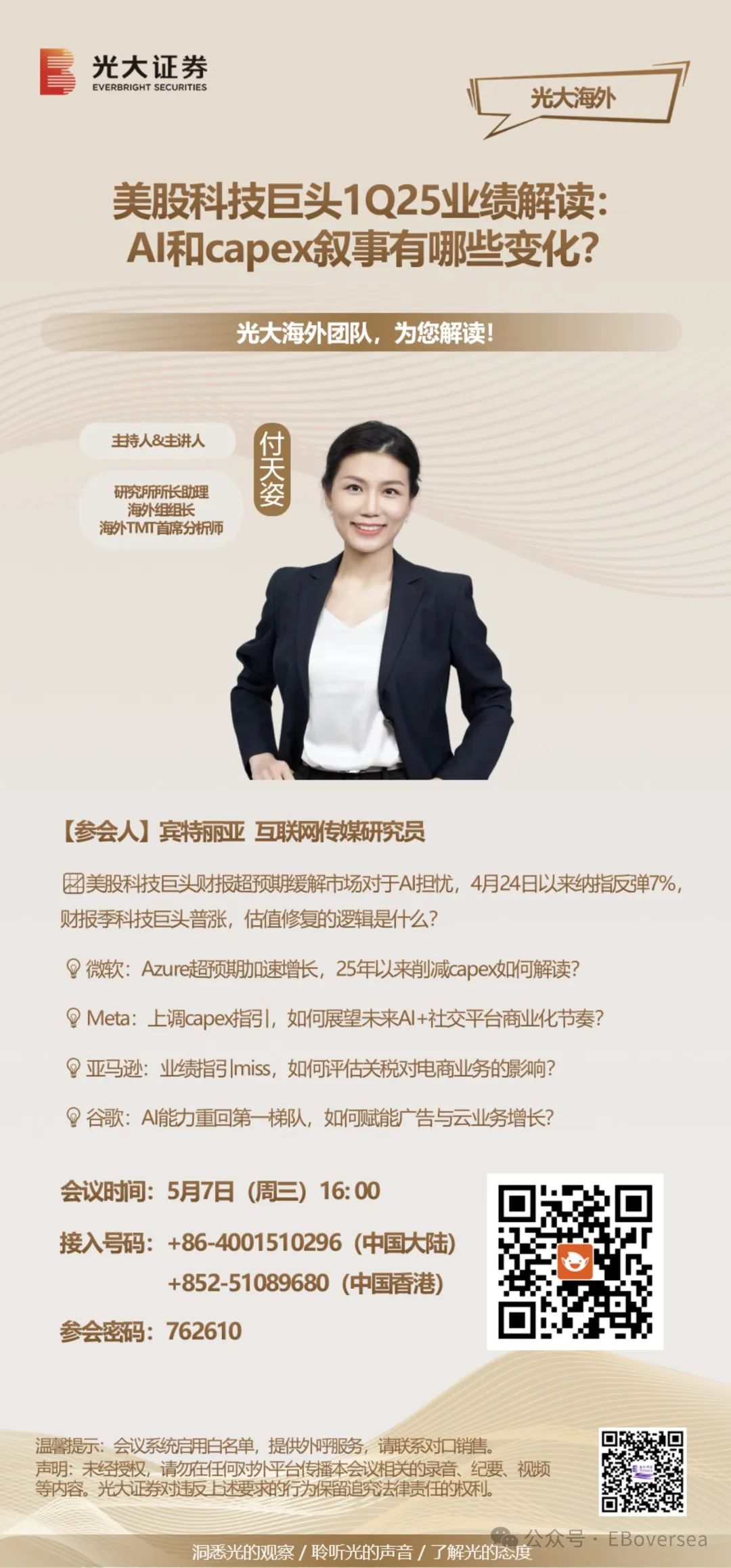 【光大海外】电话会:美股科技巨头1Q25业绩解读,AI和capex叙事有哪些变化?